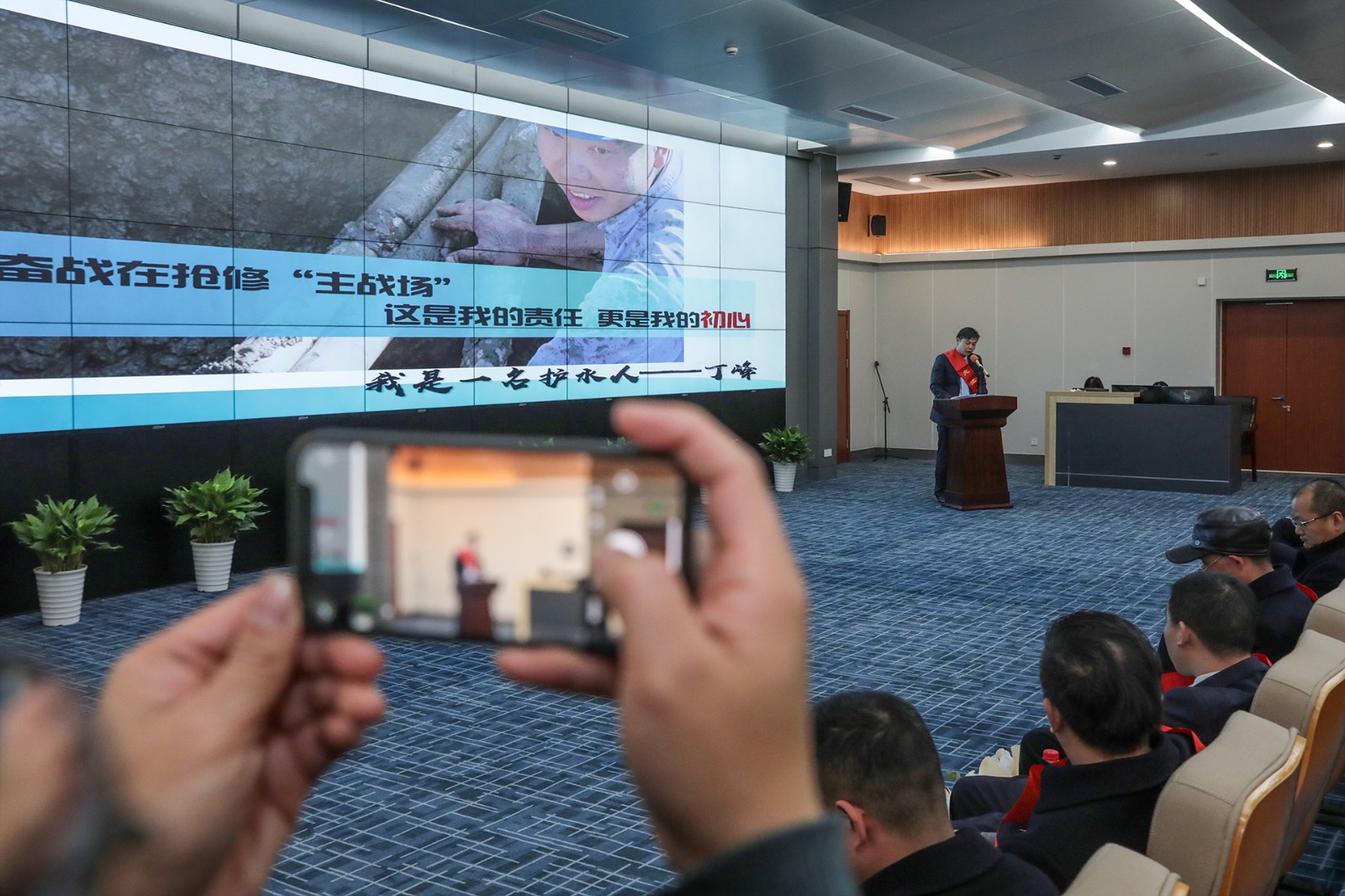 宣講會上,先進典型代表分別作了報告,分享自己的水務(wù)故事,他們用真摯的情感和質(zhì)樸的語言與大家分享的感人事跡,深深打動了聆聽報告的在場人員。近兩個小時的宣講,活動現(xiàn)場不斷響起熱烈掌聲。