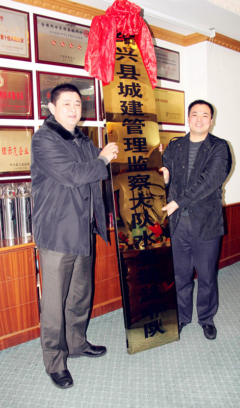 ,紹興縣城建管理監察大隊水務執法中隊成立授牌儀式在排水公司舉行??h城管辦副主任許立人、集團公司副總經理馮梁峰等領導參加儀式。