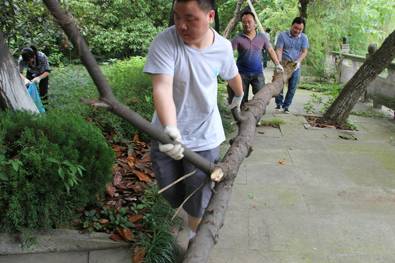 圖為黨員們清理大院內(nèi)枯枝現(xiàn)場