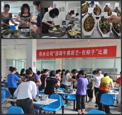 下午,供水公司婦委會在公司食堂內舉行了“迎端午,女職工賽廚藝、包粽子比賽”,共有40多名女職工參加。